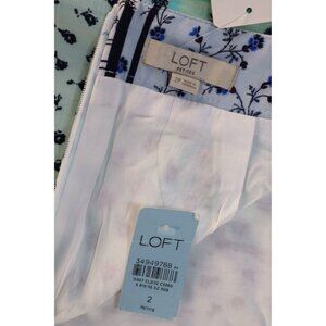 This Loft Petite wrap skirt combines delicate floral patchwork patterns in mint and navy hues. The cotton blend fabric ensures a breathable and comfortable wear, while its adjustable wrap style adds a versatile and flattering fit. The petite size 2P makes it ideal for those seeking a tailored and chic addition to their wardrobe.