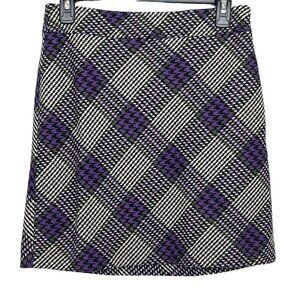 Loft Petite 4P Purple Black Plaid Mini Skirt Tweed Fall Workwear