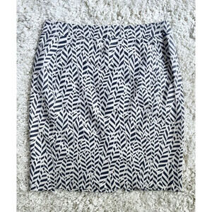 Loft Petite 6P Cream & Gray Geometric Print Pencil Skirt
