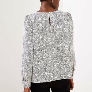 Loft Petite Dotted Puff Shoulder Blouse, Color: Whisper white, white with black dots. Good condition, no flaws.