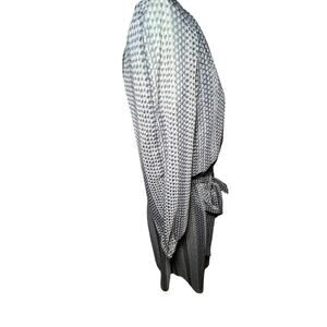 Loft Petite Dress Small Gray Black Dot Print Belted V Neck Long Sleeve Work