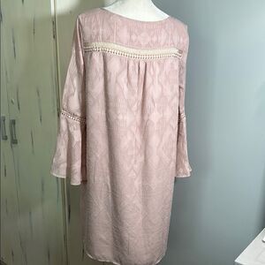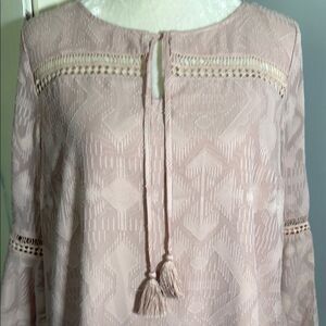 Loft Outlet Chic pink boho dress with bell sleeves. Features intricate see through lace patterns on front, back and sleeves and tassel detail. Like new condition. From a smoke free and pet friendly home.