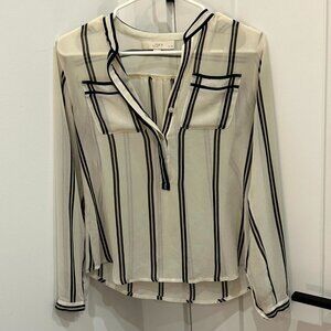 Sheer blouse, half-button V-neck with striped pattern from Loft. Size small petite. Polyester. Good condition.