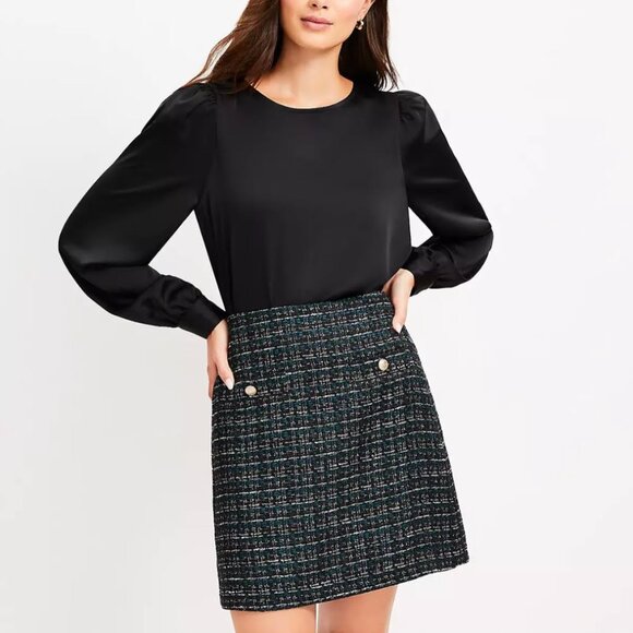 Loft Petite Metallic Tweed Button Pocket Mini Skirt