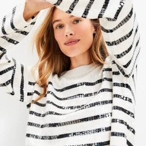 Loft LP. Stylish white sweater with black sequin stripes. Perfect for a chic look. Worn one time.