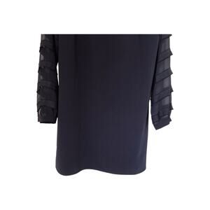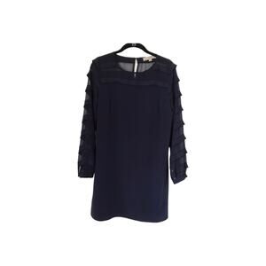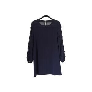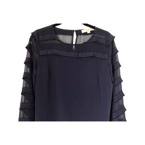 Loft Petites Dress Size SP Navy Blue Striped Sheer Yoke Long Sleeve Shift