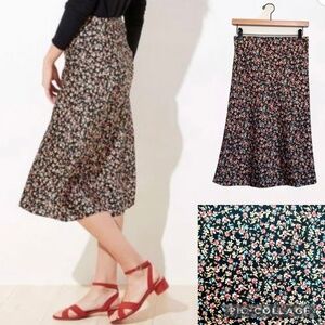 Loft Petites Floral Midi Skirt Black Multicolor Size MP