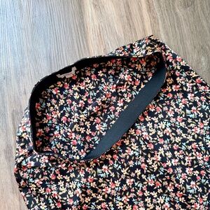 Keywords/Tags: floral skirt, feminine fashion, spring outfit, summer style, romantic look, casual chic, garden party, picnic outfit, workwear essentials, vintage inspired, modest fashion, easy layering, capsule wardrobe, versatile separates, boho floral, classic black base, soft aesthetic, preppy feminine, timeless style, weekend brunch
