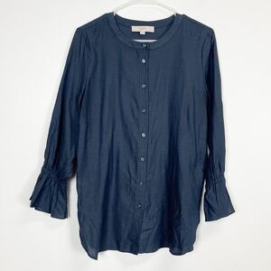 Loft Petites Shirt Womens Size Medium MP Blue Button Up Blouse Measurements shown in pictures