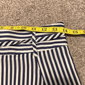 Loft Petites navy and white striped belted skirt in size 0P. 100% rayon with 100% polyester lining, removable tie belt, hidden side zipper with hook and eye closure. Excellent like new condition. Please see photos for approximate measurements laying flat and details. From smoke free and pet free home.
