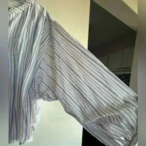 LOFT Size XL Pink Blue Stripe Button Down Shirt Puff Sleeve Oversized Summer