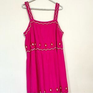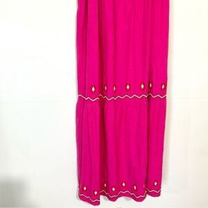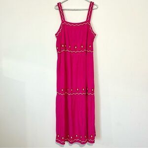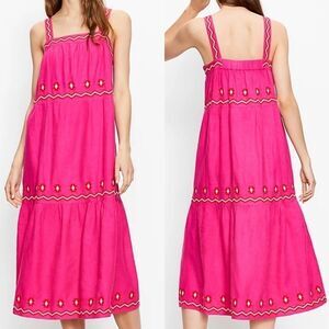 Loft Pink Embroidered Tiered Square Neck Midi Dress SIZE LARGE