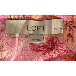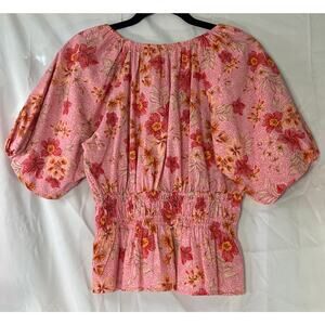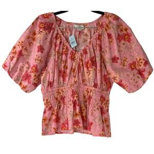 Loft Pink Red Floral Scoop Neck Puff Sleeve Smocked Peplum Top Petites SP NWT