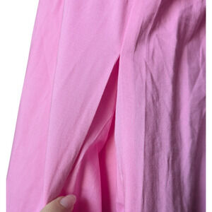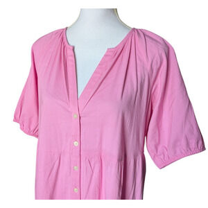 Loft Pink Tiered Short Sleeve Button Front Midi Dress Size Medium V Neck Pockets