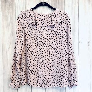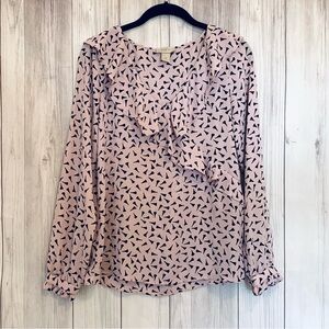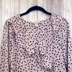 Loft Pink and Black Patterned Faux Wrap Ruffle Blouse Size XS
