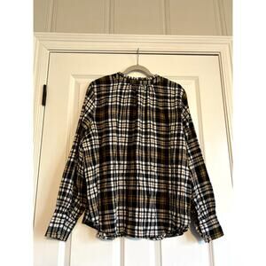 From Loft....Plaid blouse in the colors of brown, black and white....This is perfect for the fall-pictures, ball games, pair it with corduroys or jeans and boots and you are good to go!