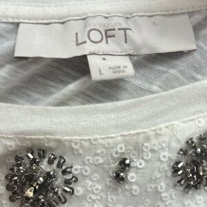 Loft Platinum Jewel Embellished Sequin White Top Women’s Size L