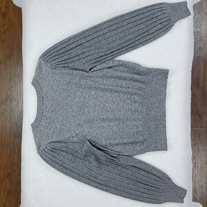 Loft Pleated Puff Sleeve Gray Sweater Size Small