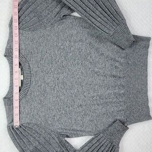 Loft Pleated Puff Sleeve Gray Sweater Size: Small