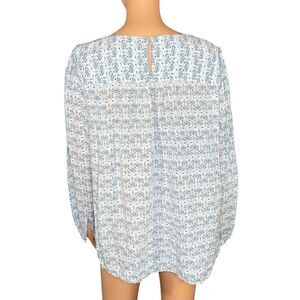 Loft Plus Blue Patterned Long Sleeve Blouse Rounded Neckline Womens Size 16