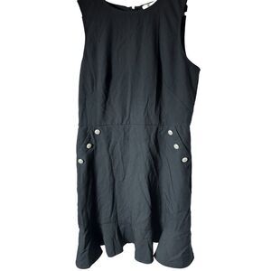 Loft Plus Dress Womens 10 Navy Blue Sleeveless Buttons Pockets Career Nautical