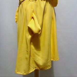 NWT. Yellow Floral Ruffle Dress for Women Various Plus Sizes. Cut out detail and ruffles at neckline, elasticized waist with matching belt, has button back neckline for ease of wear, ruffles sleeves. Has 2 side pockets as shown in pic. Pictures are part of description.
