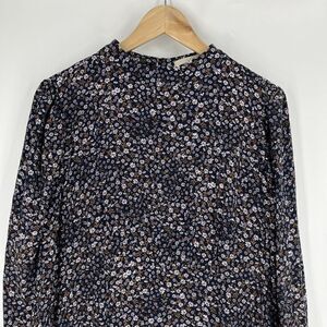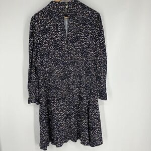 Loft Plus Dress Size 14 Womens Navy Floral Print Mock Neck Flare Puff Sleeve