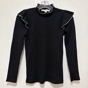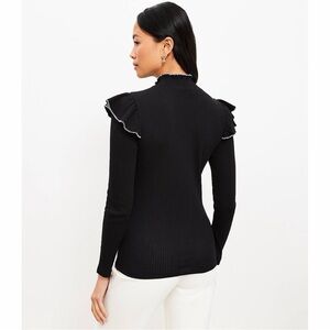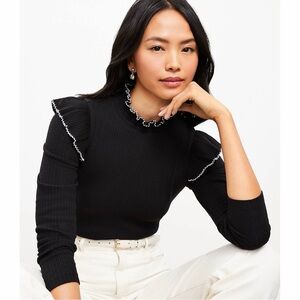 Loft Pointelle Ribbed Ruffle Top Small Petite NWT