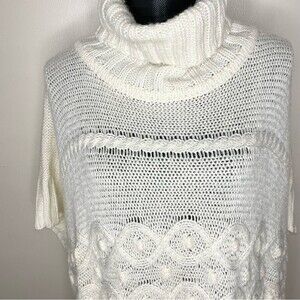 Loft Poncho Sweater Cable Knit Turtleneck Tunic Acrylic Ivory Size Medium Large
