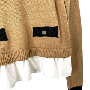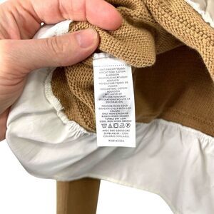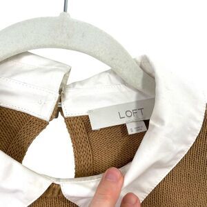 Loft Poplin Layered Mixed Media Sweater Size S neutral tan white