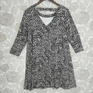 Loft Printed Keyhole 3/4 Sleeve Shift Dress M Unlined 2467