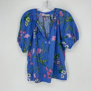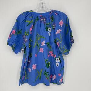 Loft Puff Sleeve Split Neck Floral Top Size Medium