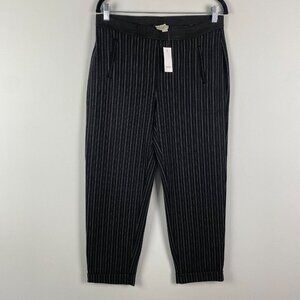 Loft Pull On Crop Pants Size Medium Black Stripe Cuff