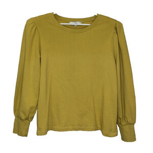 Loft Pullover Sweatshirt Top Womens Size XL Yellow Long Puff Sleeve Round Neck