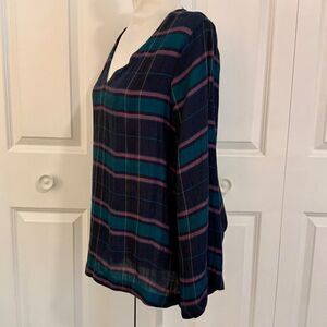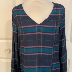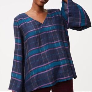 Loft Purple Blue Stripe Bell Sleeve Keyhole Back Top Medium