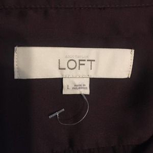 Loft Purple Brown, Collared, lightweight, button up, long sleeve Blouse. Size Large. Pre-owned. Perfect for casual or formal events. Dress it up or dress it down.