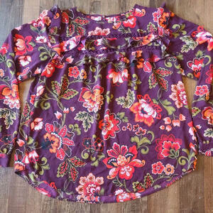 Loft Purple Red Maroon Ruffle Flowy Long Sleeve Blouse