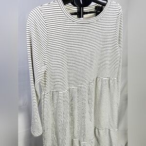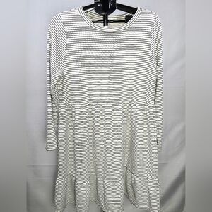 Loft Quiet Luxury Striped Tiered Midi Coastal Chic Swing Dress, Large