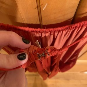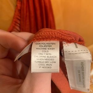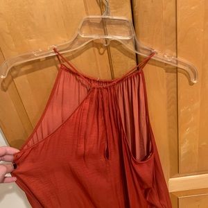 -size small -perfect condition -flowy -clips on back -rust color
