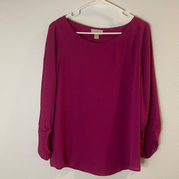 Loft Raspberry Polyester Long Sleeve Top Size: Medium