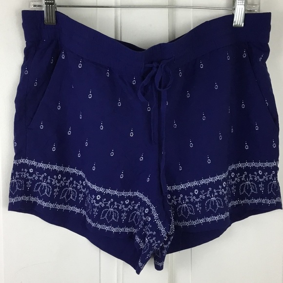 Loft Rayon Drawstring Shorts Pull On Blue Size M