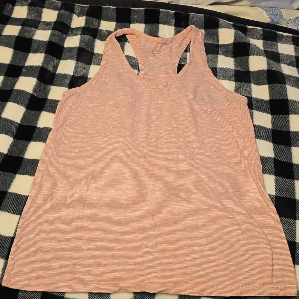 This tank top from loft is a heathered, red white marled color. The razor back is a great basic, a comfy tank to have! Like new!
