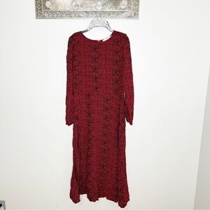 Loft Red Animal Print Cheetah Long Sleeve Midi Dress Size 8