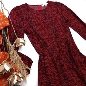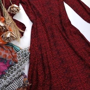 Loft Red Black Animal Print Maxi Dress Sz 0