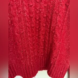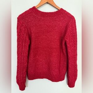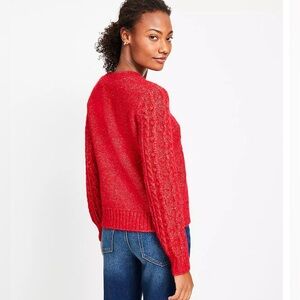 Loft Red Bobble Cable Knit Balloon Sleeve Crewneck Sweater Small