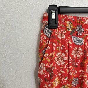 Loft Red Colorful Floral Wide Leg Ankle Pants Size M Drawstring Pockets Comfy