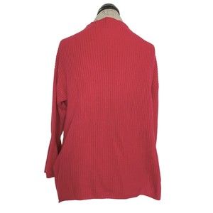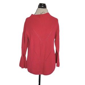 Loft Red Sweater Ribbed High Neckline Mock Chunky Knit Bell Sleeve Size Medium