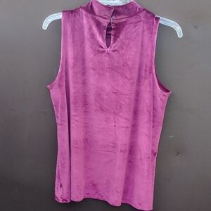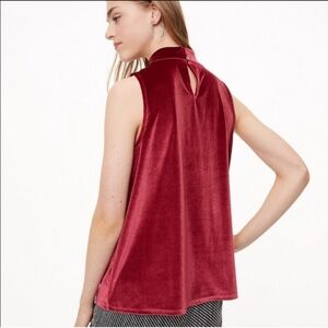 Loft color between red and maroon Velvet High Neck Swing Top Sz M, sleeveless, keyhole back.