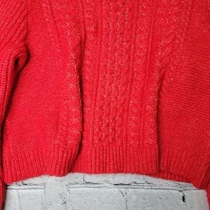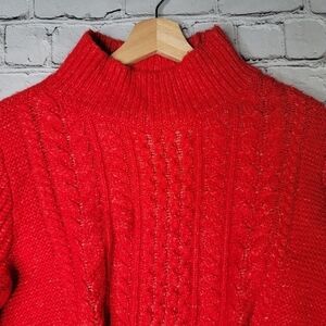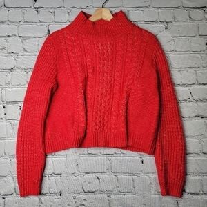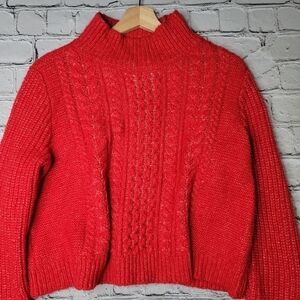 Loft Red Wool Blend Cropped Mock Turtleneck Cable Knit Soft Sweater Size L