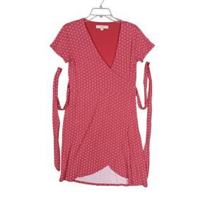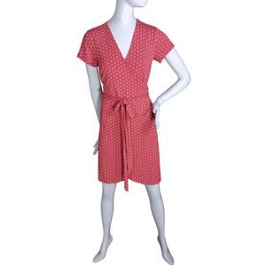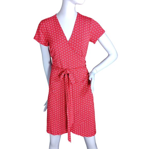 Loft Red Wrap Dress With White Floral Pattern Size 2 Short Sleeve Rayon Blend